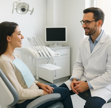 Shares details about dental procedures, pricing, and insurance options